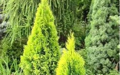 We bought a pair of small Janed Gold Arborvitae for our front entrance planters. They arrived promptly, well packaged and healthy. We live in a rural area where plant selection is lacking, so we’re pleased to get these by mail with free shipping. I do wish the bushes had been matched better in size, since they’re displayed side by side. But they will probably even out over time.——————————————-They will even out and they can be pruned to match. Thanks for the great review! We are so glad you are pleased and we hope you enjoy them for years to come! 🙂 Beth Steele | WBG