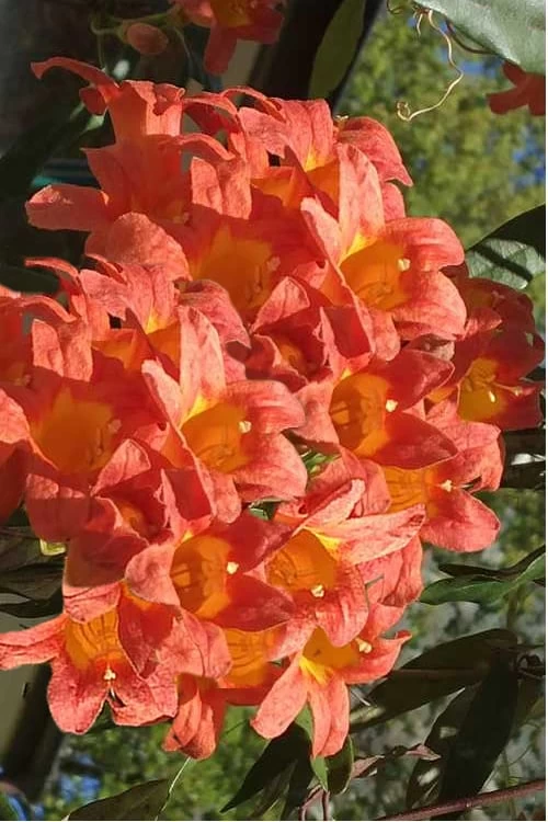 The Jekyll Orange Crossvine is exceptionally easy to grow in most any moist but well-drained soil of average to low fertility. It grows in full sun or shade, however blooms heavier with more sun. We suggest at least 5 hours of direct sunlight for full flowering. Plants are quite drought tolerant when established. Pruning isn’t necessary, however vines can be pruned after flowering to keep tidy.Â