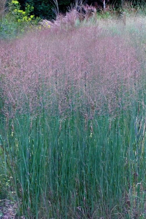 A beautiful and low-maintenance North American native, Prairie Sky Switch Grass forms attractive upright clumps of powdery sky blue foliage topped with airy, cloud-like plumes of rose-pink flowers in mid summer that persist through fall. The brick red seed heads are carried on showy plumes displayed in abundance from late summer to mid fall. The leaves turn red on the tips as the season progresses turning to a gorgeous gold in the fall. Performing best in full to mostly sun and tolerating both moist and dry conditions, Prairie Sky supplies an ideal wildlife habitat providing shelter and food for songbirds. In case you were wondering, Switch Grass gets its name from the calming swishing sound produced with a gentle breeze.
