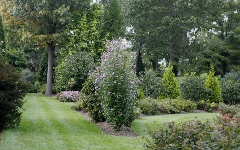 Growing in an upright, columnar form 10 to 16 feet tall with a spread of 2 to 3 feet, the Purple Rose of Sharon has many uses in the landscape. It is ideal for use as a specimen, in groupings or as a narrow hedge or screen where space is limited. Also great for accentuating entryways or as a vertical accent anywhere in the sunny landscape. Plant one near the patio or other outdoor living spaces so you can enjoy the flowers and the butterflies and hummingbirds that will visit them.Â