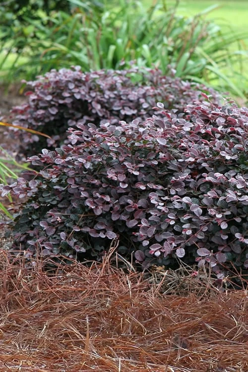 With its dense, mounding form and outstanding deep purple foliage and flower color, Purple Pixie Loropetalum is just the plant we’ve been looking for…for decades. Growing to only about 2 feet in height with a spread of 3 to 4 feet, Purple Pixie boasts some of the most intense purple foliage color of any plant on the market, and the color doesn’t fade during summer or winter or in sun or in shade. Vibrant pink, witch hazel-like, fringe flowers are produced in spring, providing a stunning contrast to the the purple, evergreen foliage.