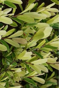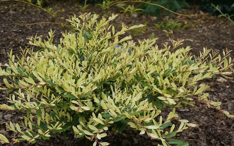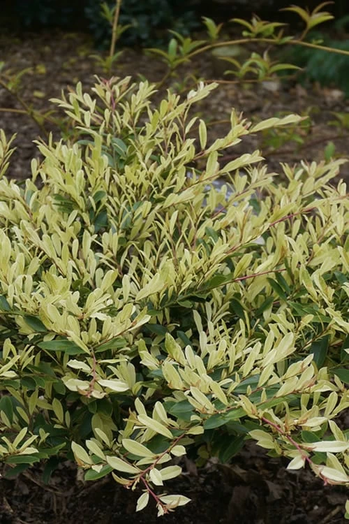 Befitting its name, ‘Spring Frost’ is a lower growing Distylium that sports outstanding white new growth that lights up the landscape. A member of the witch hazel family, petite red flowers emerge along the branches in late winter before new leaves emerge. No other evergreen plant we’ve seen looks like Spring Frost Distyilium so it’s sure to be a standout in your landscape!