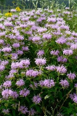 Growing 2 to 4 feet tall and 2 to 3 feet wide, Wild Bergamot Bee Balm is ideal for use as a specimen in smaller garden spaces or in groupings in perennial or meadow gardens or behind low growing shrubs in landscape borders. A fine addition to butterfly and pollinator gardens, cut flower gardens, fragrance gardens, native gardens, purple theme gardens and consistently moist bog and meadow gardens.